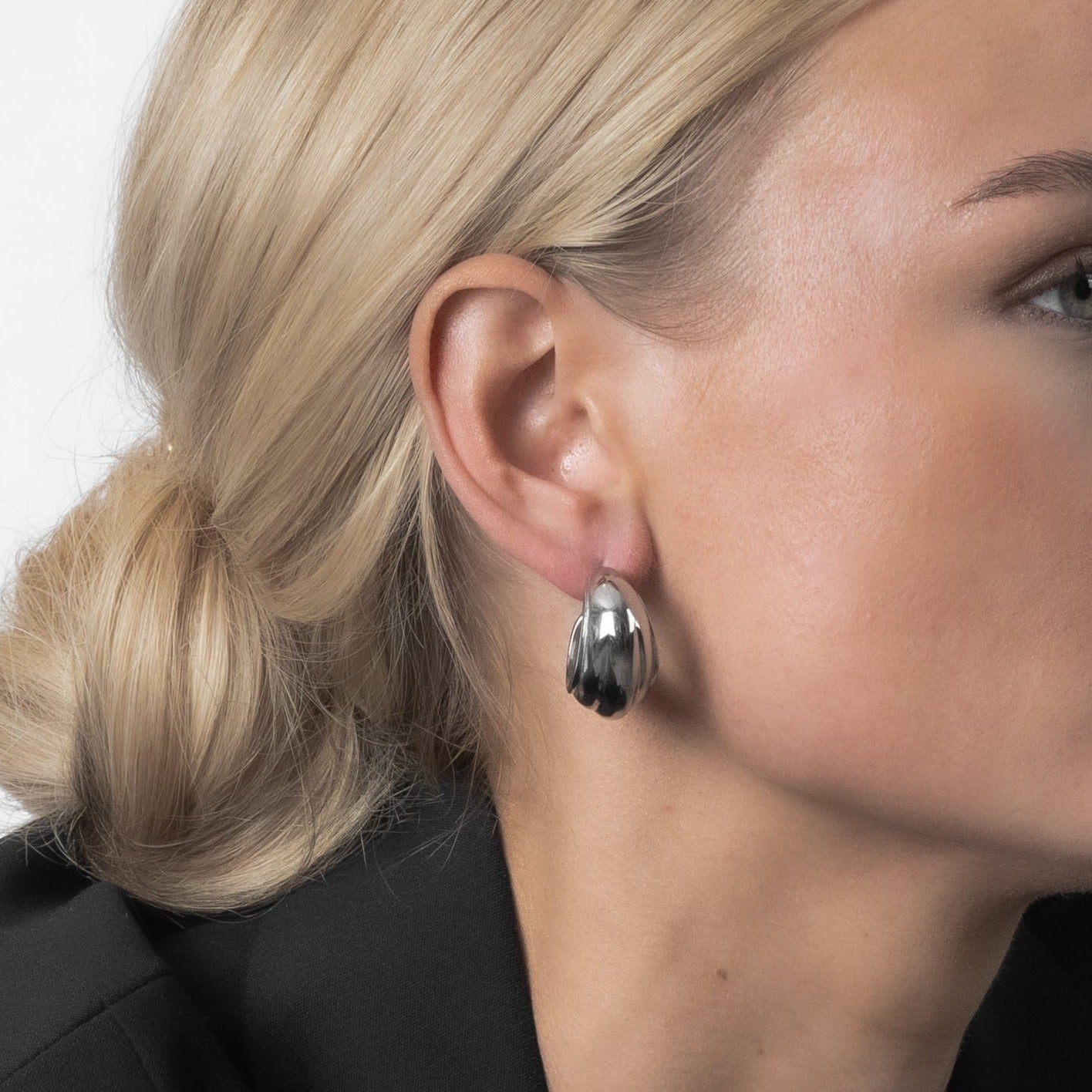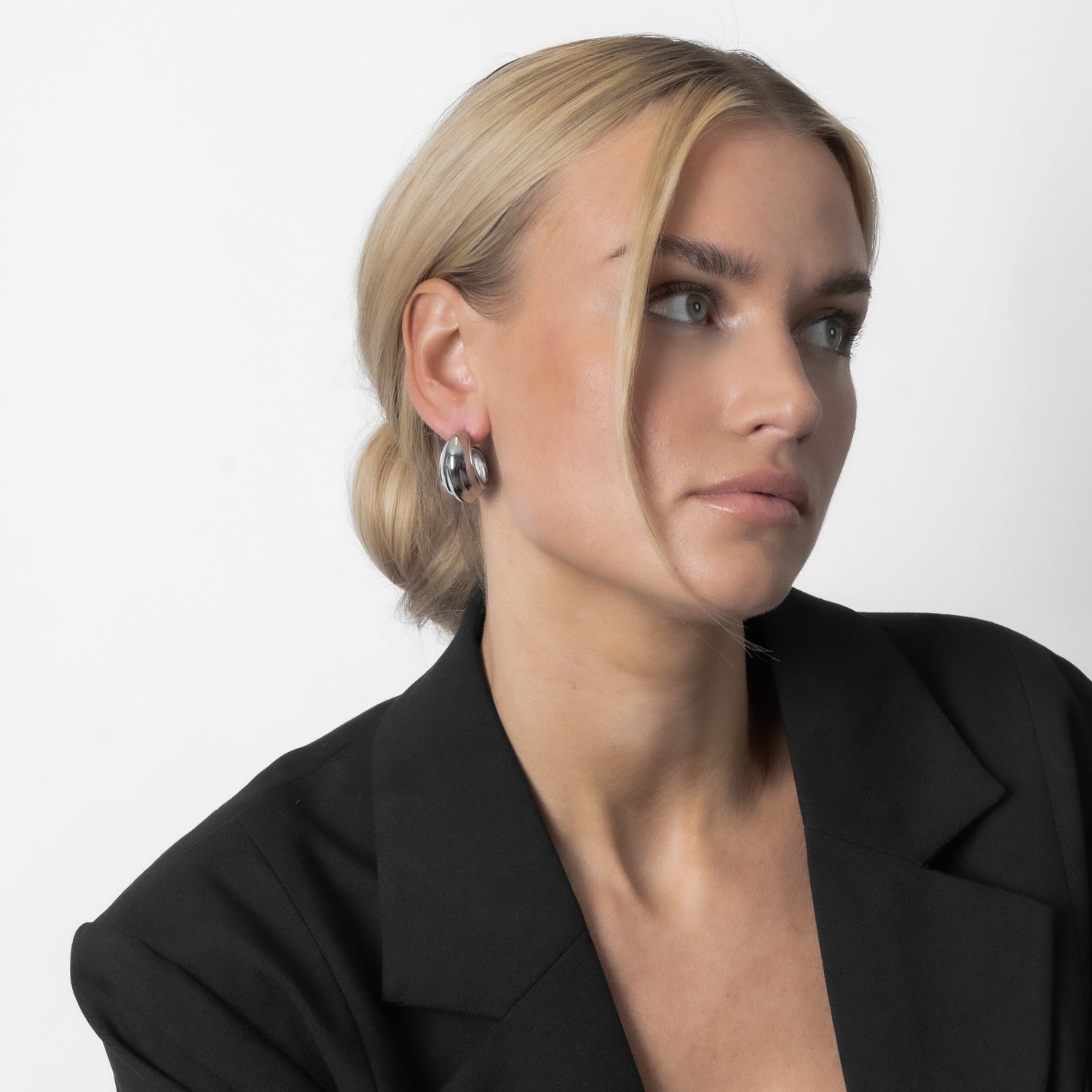BOLD HOOPS EARRINGS - Sleek and stylish hoops that effortlessly elevate any outfit. Perfect for both everyday wear and special occasions. The earrings are designed with a domed interior, making them lightweight for maximum comfort. Par with BOLD RING in the same design for a complete look. Delivered in our luxurious BYBORN jewelry box.
