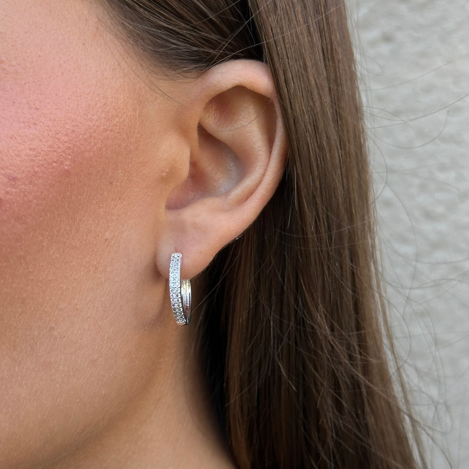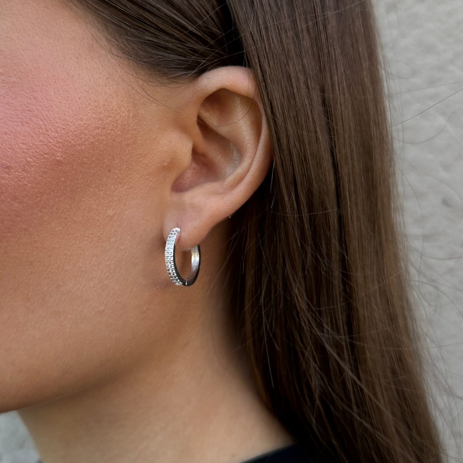 THE CLASSIC STONE HOOPS are elegant and versatile earrings, designed with a delicate row of shimmering stones that add a touch of sparkle to their classic hoop shape. These hoops offer a perfect blend of timeless elegance and modern flair. Their subtle size makes them ideal for everyday wear, while the added sparkle makes them suitable for special occasions as well. Combine with our ETERNITY PAVÉ RING for a complete look. Delivered in a luxurious BYBORN box.