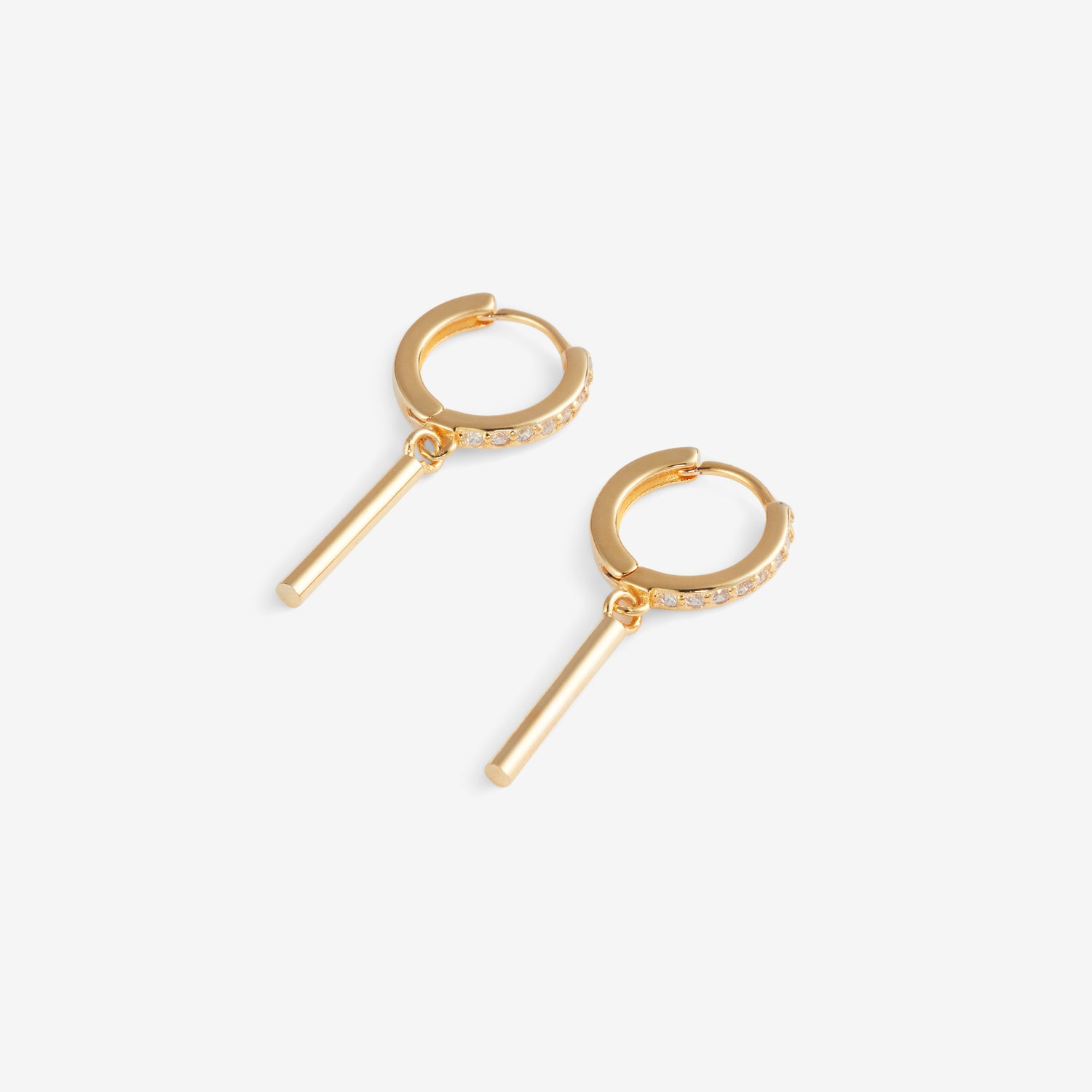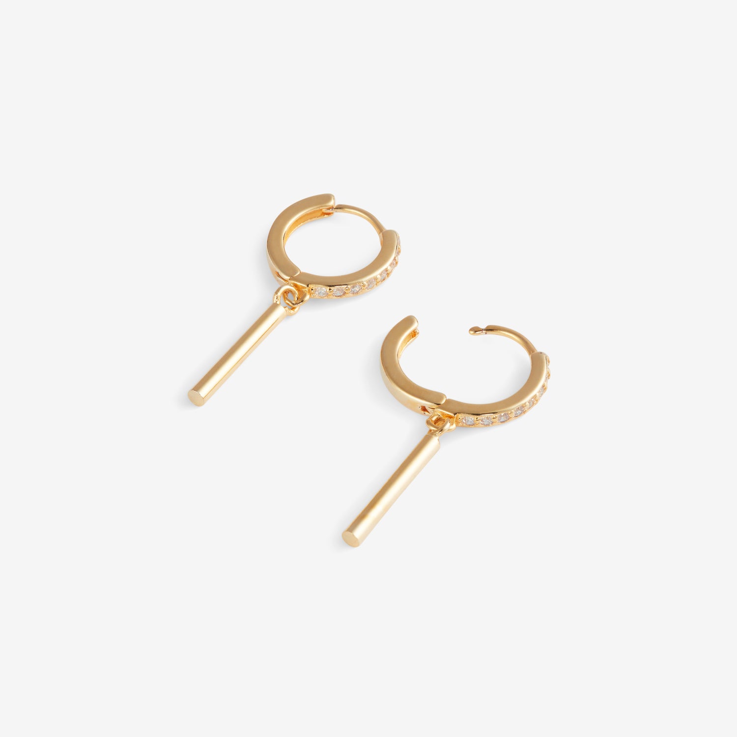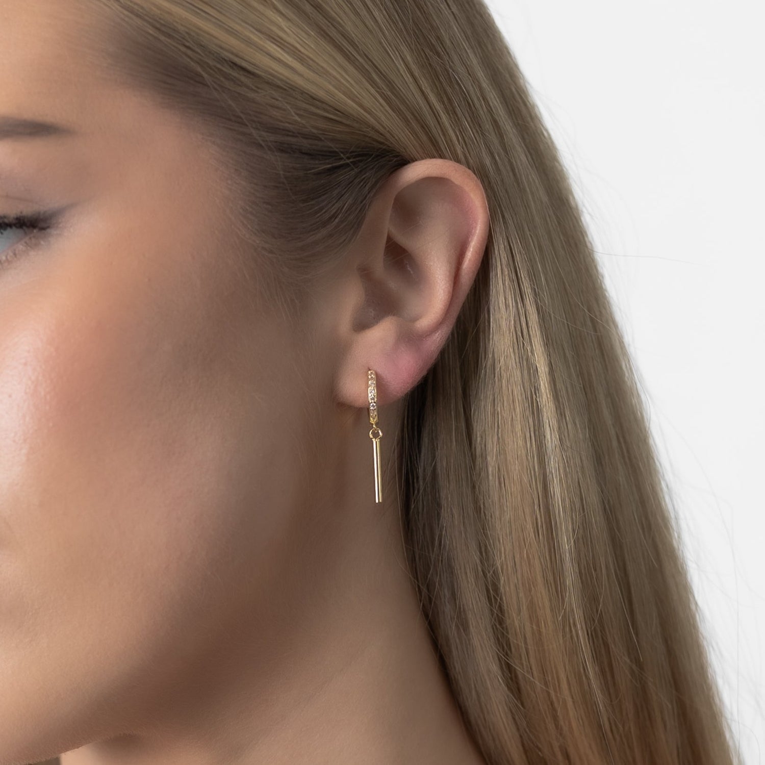 DANGLE BAR EARRINGS - elegant earrings with timeless appeal. These minimalist hoops are adorned with sparkling zirconia stones and beautifully dangling charm. They are perfect for both everyday wear and special occasions. Delivered in our signature BYBORN jewelry box.