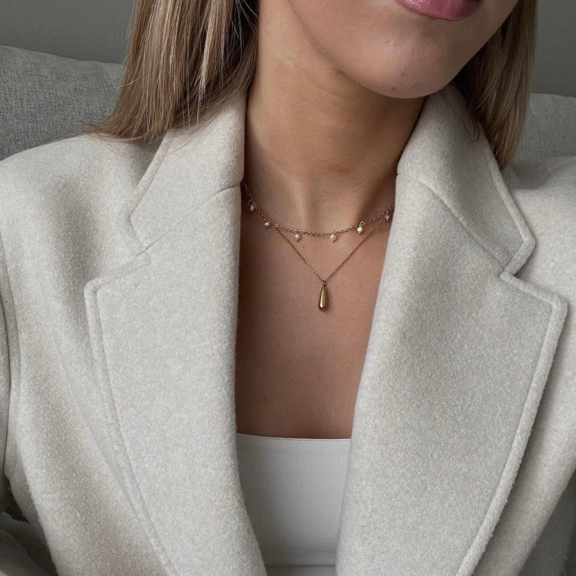 THE DROP NECKLACE pendant is a classic and delicate piece that works for any occasion. Because of its dainty design its perfect for a more simple look, but can also easily be layered with other necklaces. Pair with the DROP EARRINGS for a complete look. The jewelry is delivered in a luxurious BYBORN box.