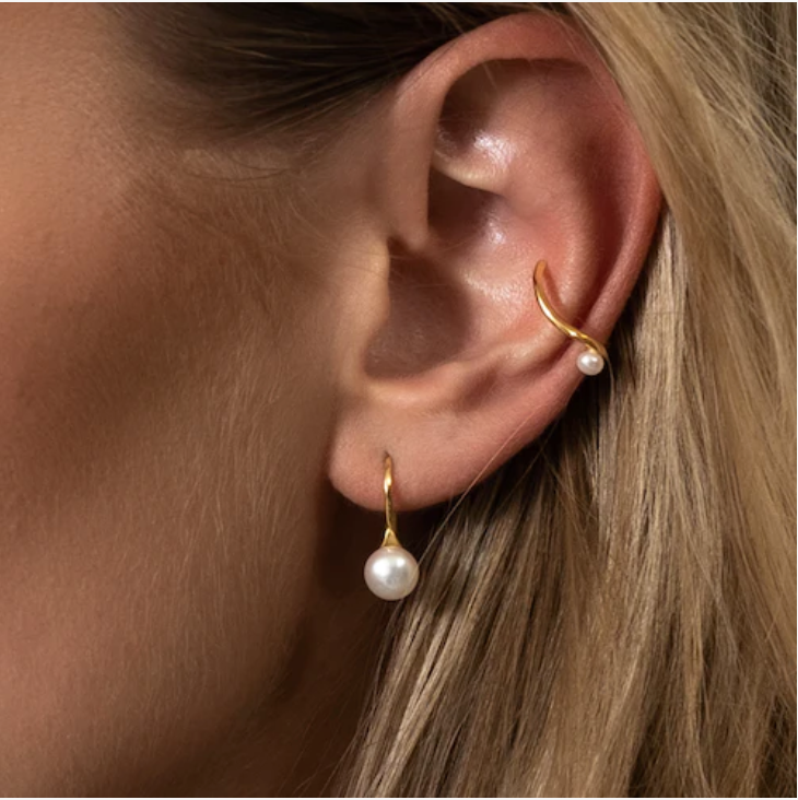 THE EAR CUFF WITH PEARL is the perfect piece to add to your look with pearl earrings. It can be worn by anyone, due to its non piercing ear cuff. The pearl is made out of freshwater pearl which gives every ear cuff a unique and personal appearance. Available in 925 sterling silver with 18k gold plating and have a width of 15 mm. The jewellery is delivered in a luxurious BYBORN box.