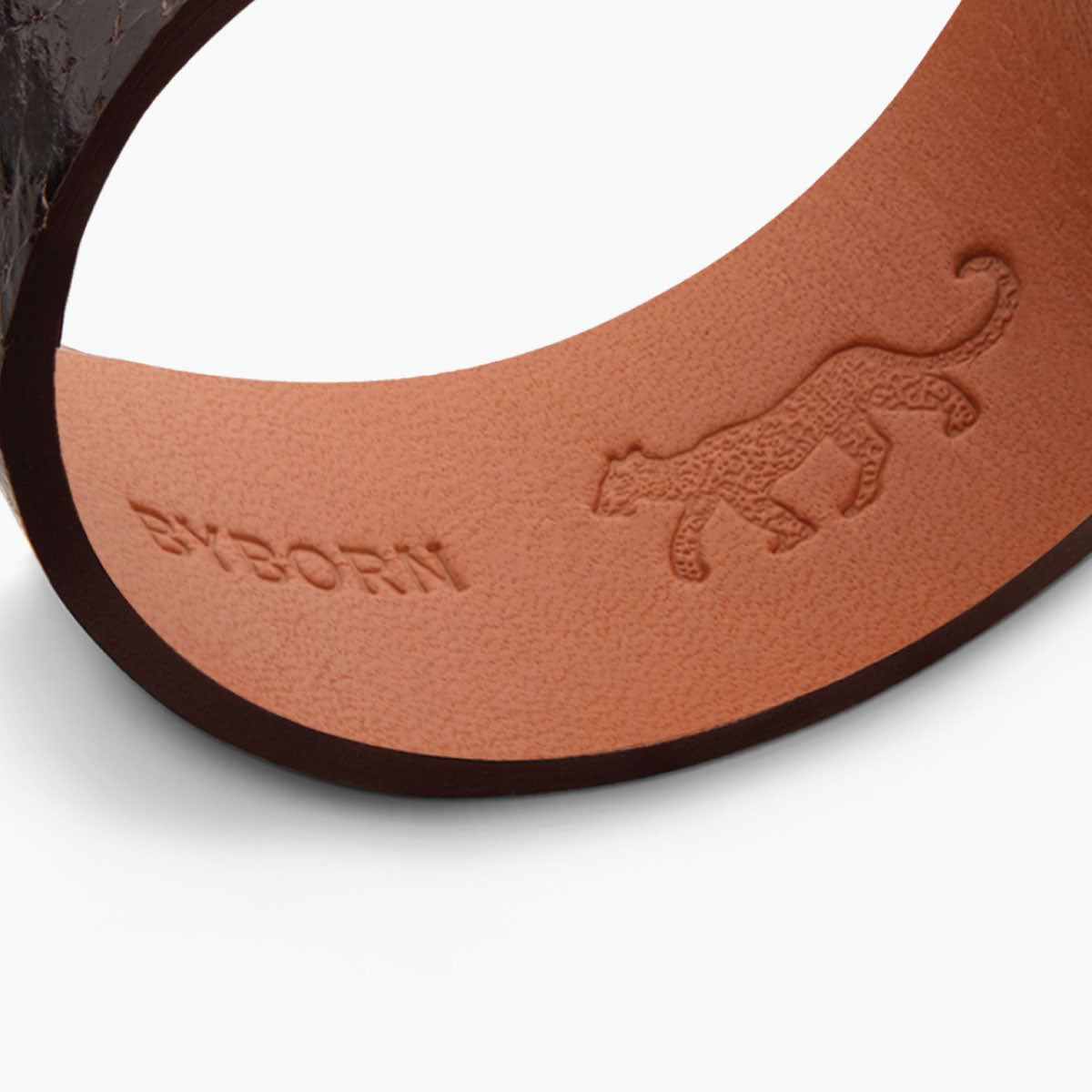 FARRIER is a beautifully handcrafted bracelet in embossed Italian calfskin accentuated with the BYBORN signature B-shape. The delicate clasp adds the finishing touch to the design. The jewelry is delivered in a luxurious BYBORN box.