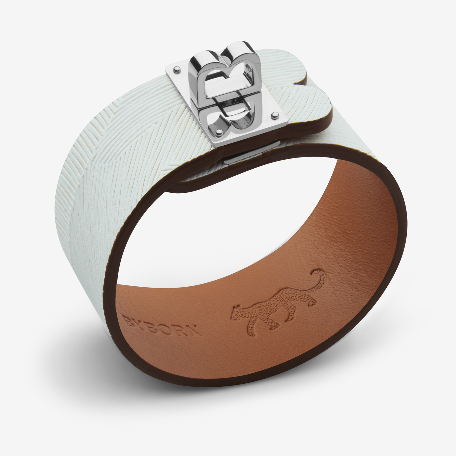 FARRIER is a beautifully handcrafted bracelet in embossed Italian calfskin accentuated with the BYBORN signature B-shape. The delicate clasp adds the finishing touch to the design. The jewelry is delivered in a luxurious BYBORN box.