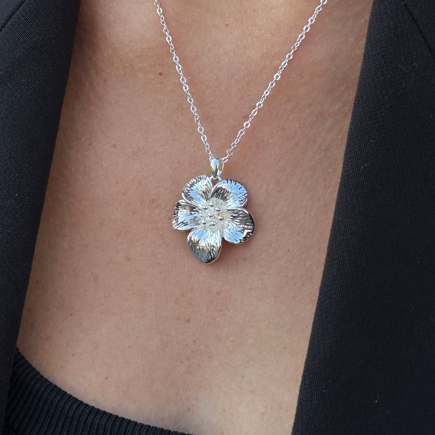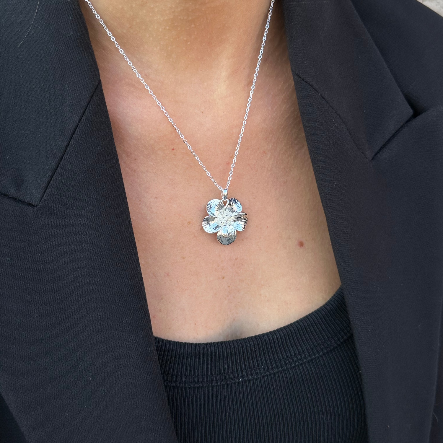 FLOWER NECKLACE – This lovely necklace features a crafted floral design that captures the delicate elegance of a blooming flower. A perfect statement yet feminine necklace for everyday wear or special occasions. Designed with a delicate chain and an adjustable length for a perfect fit. Delivered in our signature BYBORN jewelry box.