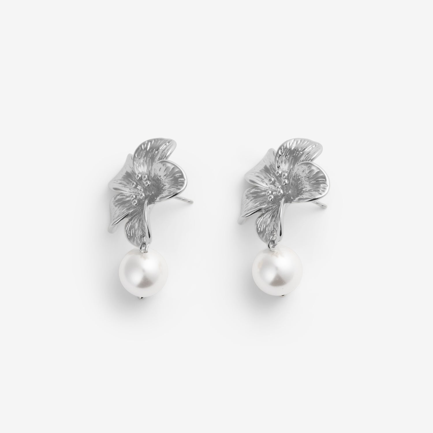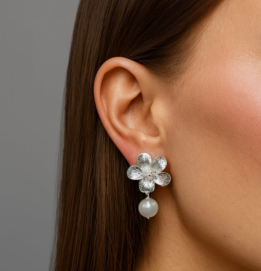 FLOWER PEARL EARRINGS Silver