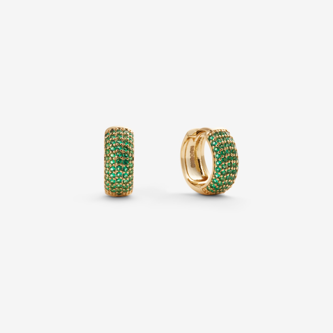 GREEN PAVÉ EARRINGS - Captivatingly small beautiful earrings with a wonderful elegance. The deep shade of green stones together with the polished surface gives a majestic impression. The earrings are decorated with rows of densely set cubic zirconia stones, which give a subtle glitter at all angles. Let the GREEN PAVÉ EARRINGS add a little extra luxury to your outfit no matter the occasion.