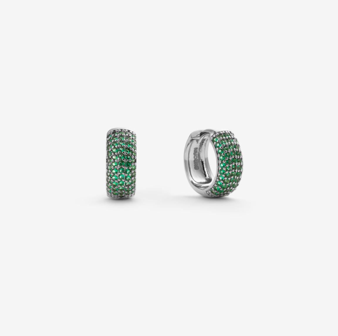 GREEN PAVÉ EARRINGS - Captivatingly beautiful earrings with a wonderful elegance. The deep shade of green stones together with the polished surface gives a majestic impression. The earrrings are decorated with rows of densely set cubic zirconia stones, which give a subtle glitter at all angles. Let the GREEN PAVÉ EARRINGS add a little extra luxury to your outfit no matter the occasion.
