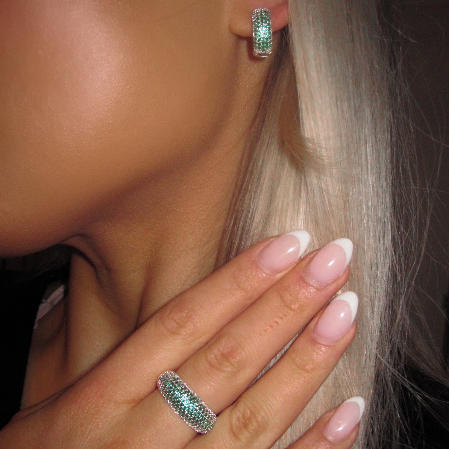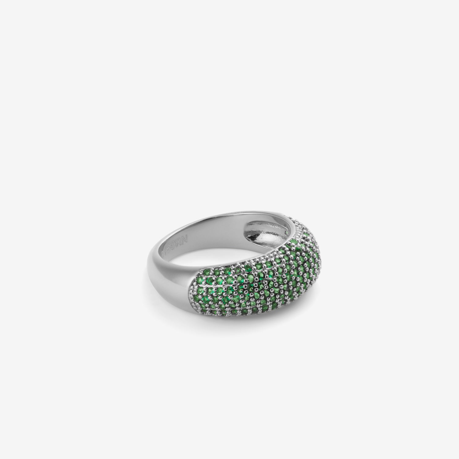 GREEN PAVÉ RING - A captivatingly beautiful ring with a wonderful elegance. The deep shade of green stones together with the polished surface gives a majestic impression.