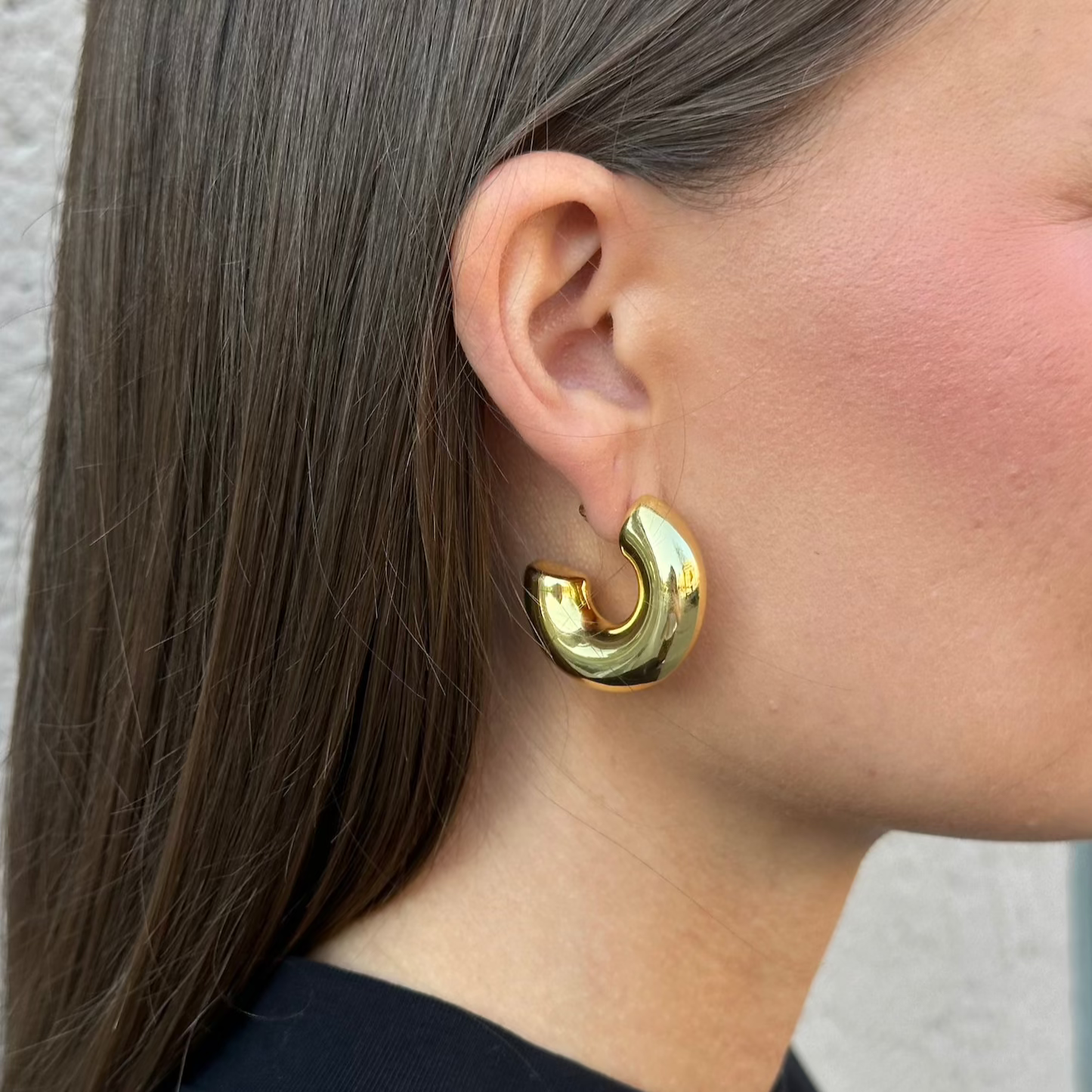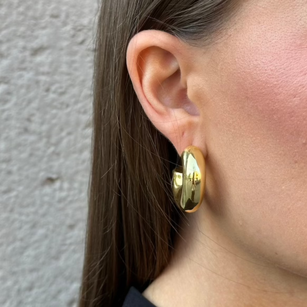 HALF BOLD HOOPS - The statement earrings with a classic twist. Designed to add a unique touch to any outfit. The earrings are lightweight and have a push-back clasp. Transform a simple outfit into something extraordinary with your HALF BOLD HOOPS.