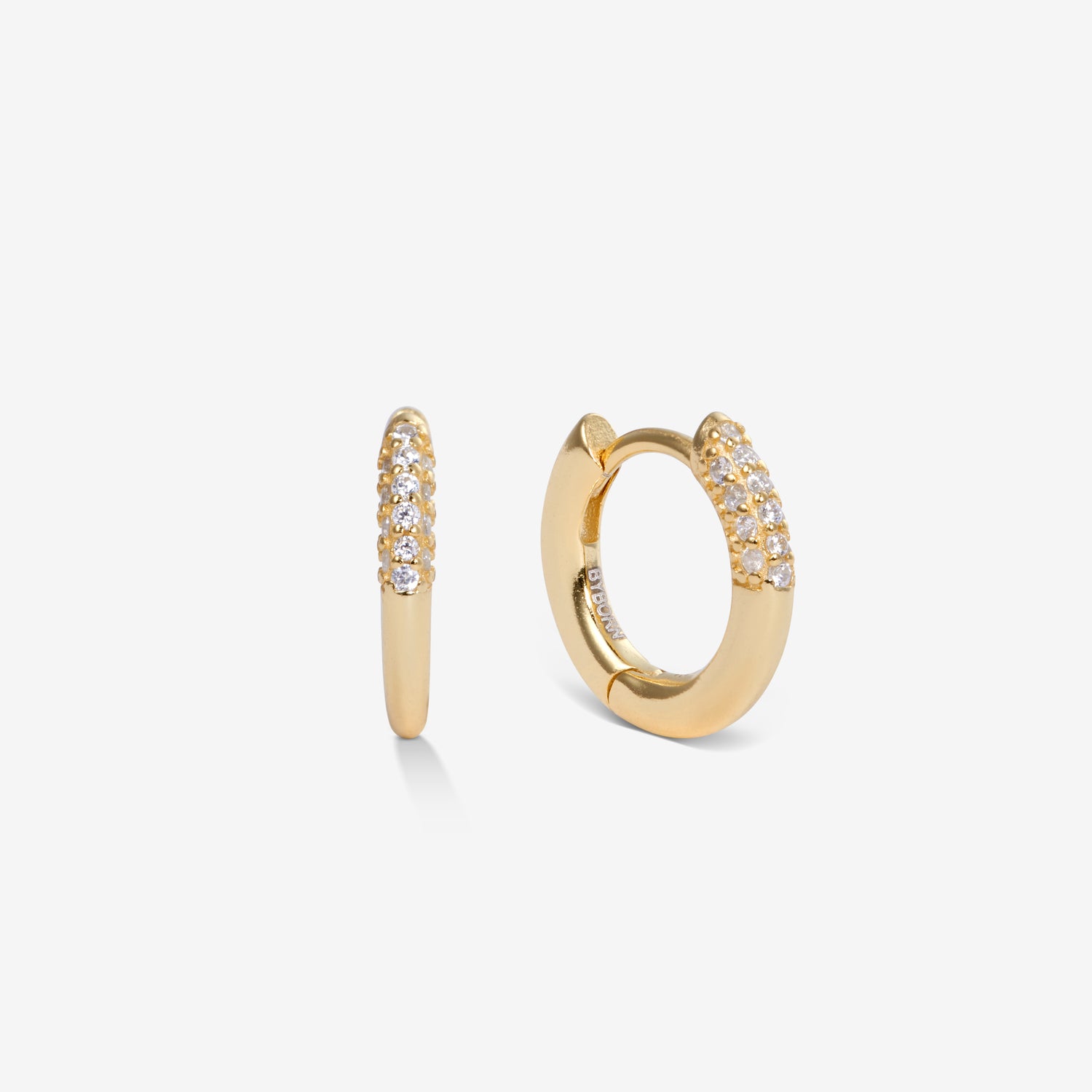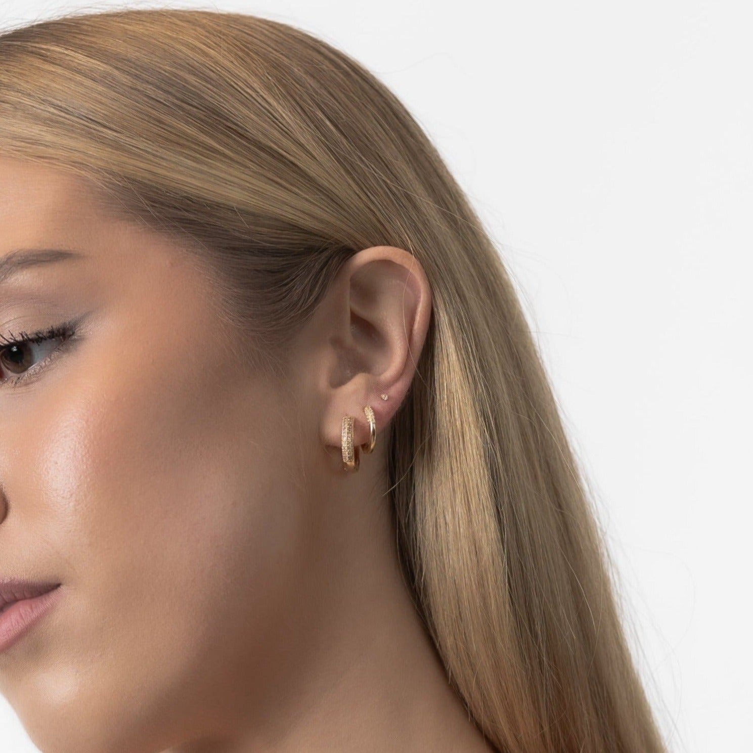 The HALF STONED HUGGIES are a pair of classic yet stylish hoops designed with small zirconia stones to create an elegant shimmer. Its minimalistic and glamorous design makes them just as right for everyday life as for more festive events. Advantageously, the earrings are so light and comfortable that you forget you're wearing them. The hoops are also perfect to combine with other smaller hoops or minimalist jewellery in the same style for a complete look. Available in 925 sterling silver or 18k gold plating. They will become your new favorite in your jewellery collection!