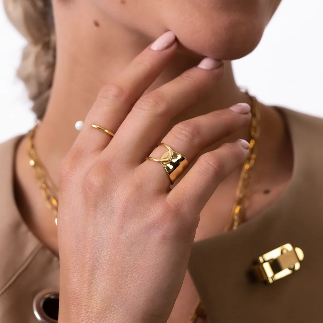 THE HALFWAY RING is fully adjustable and fits all sizes. The design is both elegant and eye-catching and a perfect addition to any outfit and ring combinations. Available in 925 sterling silver or with 18k gold plating. The ring will surely become your new favorite. The jewelry is delivered in a luxurious BYBORN box.