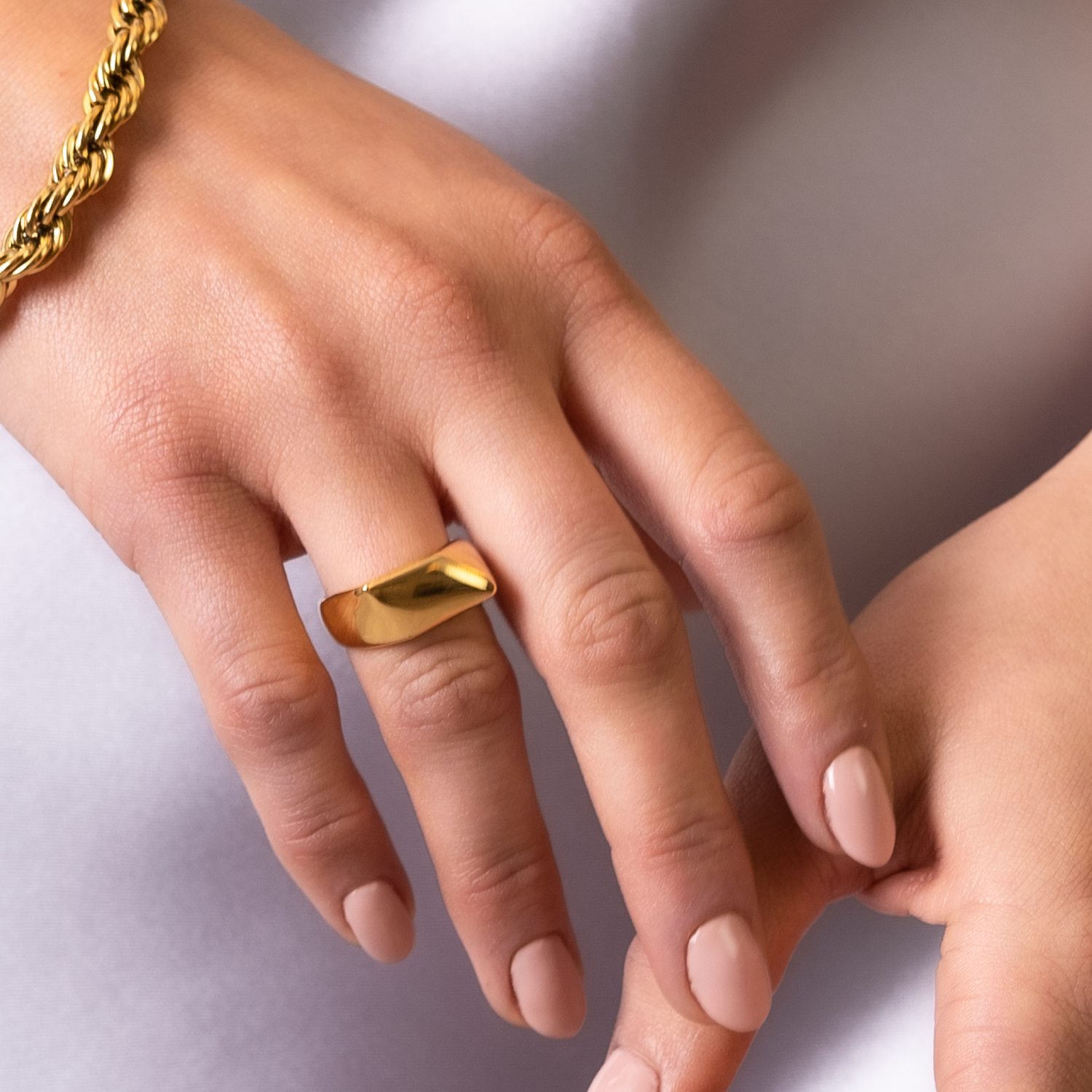 THE IRREGULAR RING is stylish and unique with a layer of 18k gold. With elegance and flare, this ring brings attention to your finger. Mix it with other jewelry or let THE IRREGULAR RING get all the attention. The jewelry is delivered in a luxurious BYBORN box.