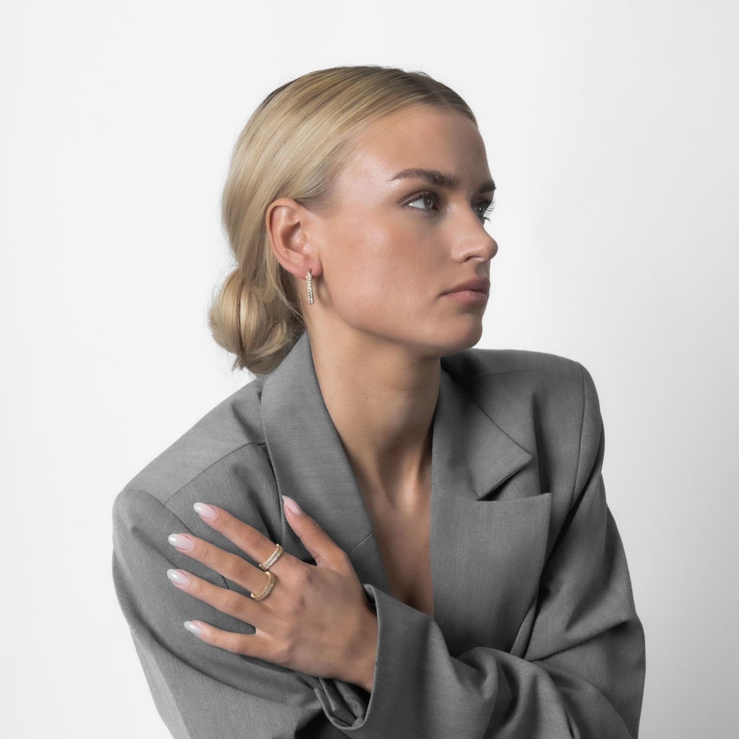THE MIDI PAVÉ EARRINGS are among our most luxurious earrings, all decorated with beautiful white cubic zirconia stones that will brighten your look. They are available in both in 18k gold and 925 sterling silver plating and have a width of 23 mm. See also our MINI PAVÉ EARRINGS if you prefer a smaller version of THE PAVÉ earrings. The jewellery is delivered in a luxurious BYBORN box.