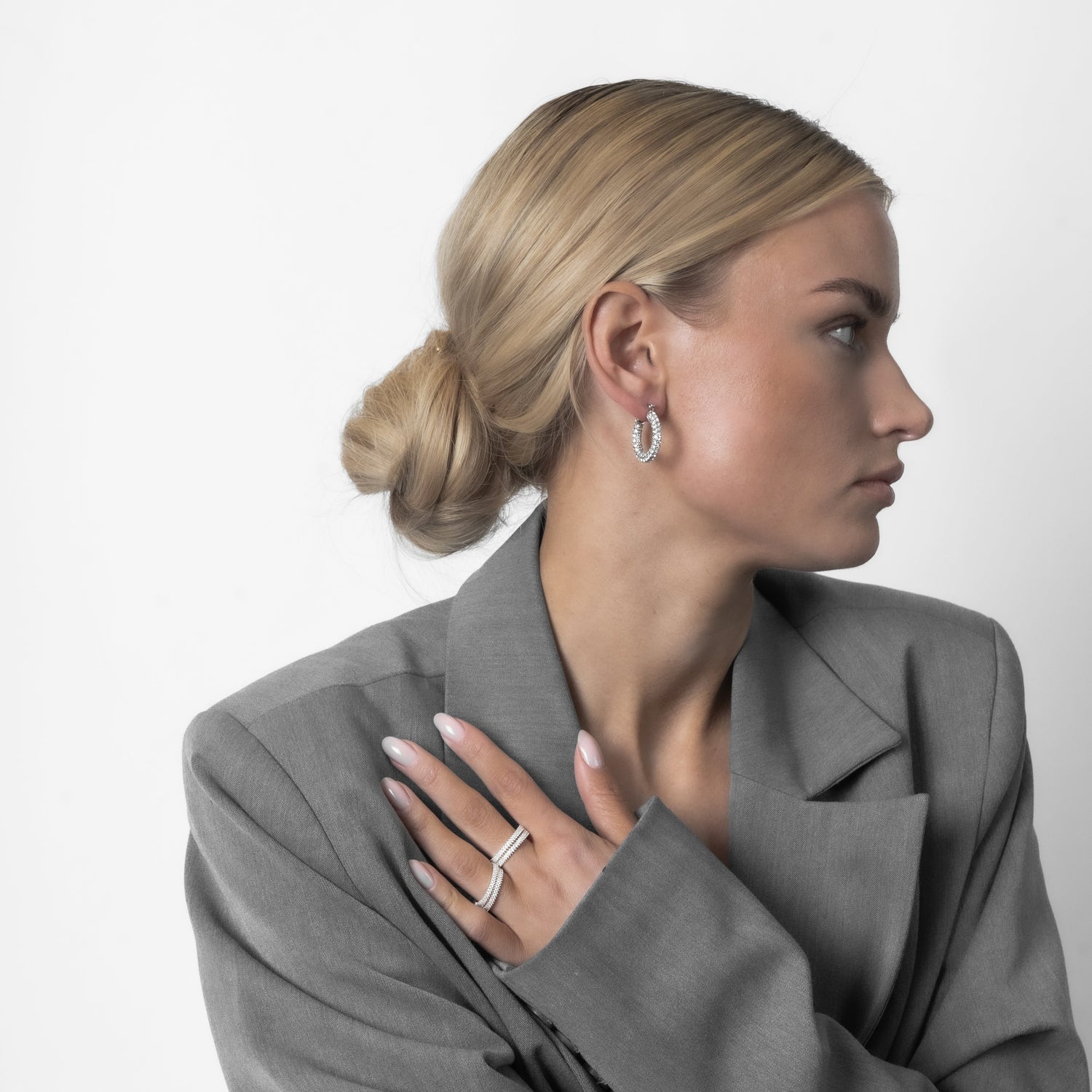 THE MIDI PAVÉ EARRINGS are among our most luxurious earrings, all decorated with beautiful white cubic zirconia stones that will brighten your look. They are available in both in 18k gold and 925 sterling silver plating and have a width of 23 mm. See also our MINI PAVÉ EARRINGS if you prefer a smaller version of THE PAVÉ earrings. The jewellery is delivered in a luxurious BYBORN box.