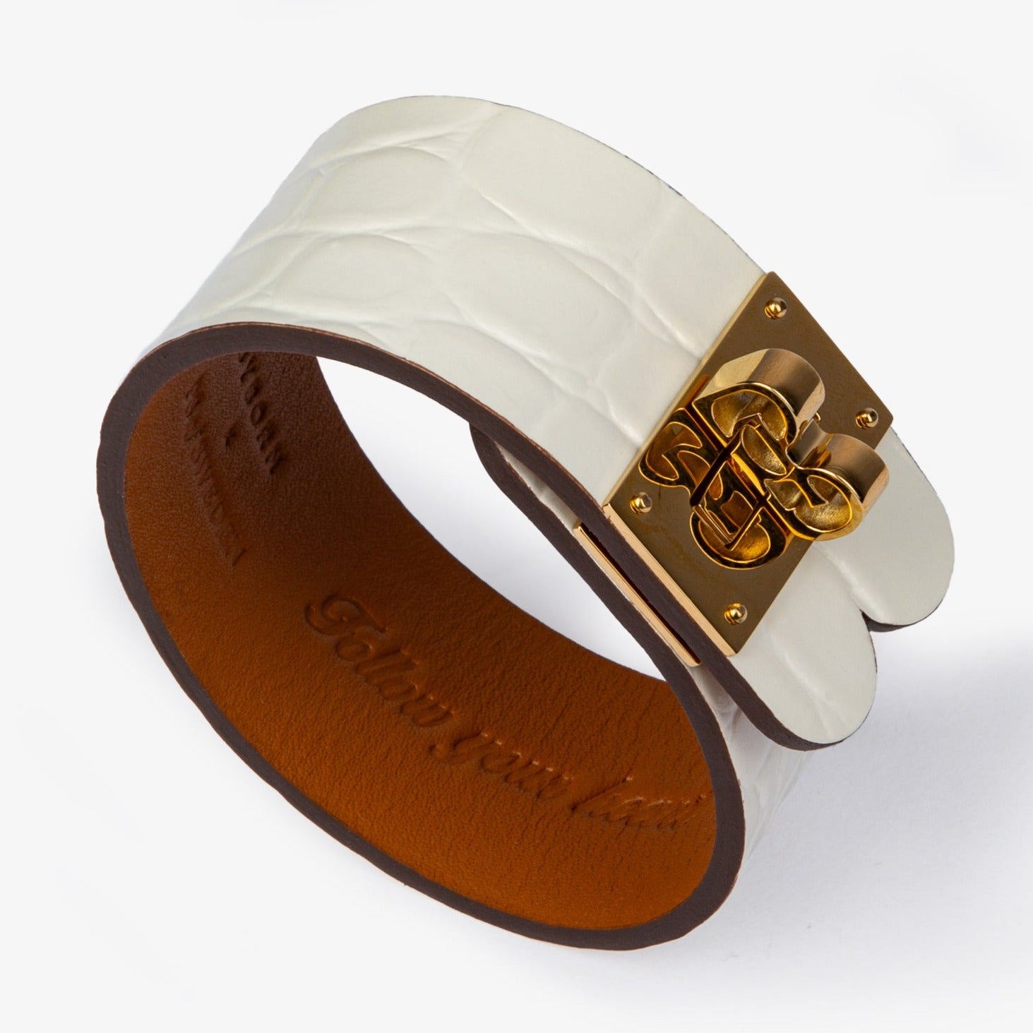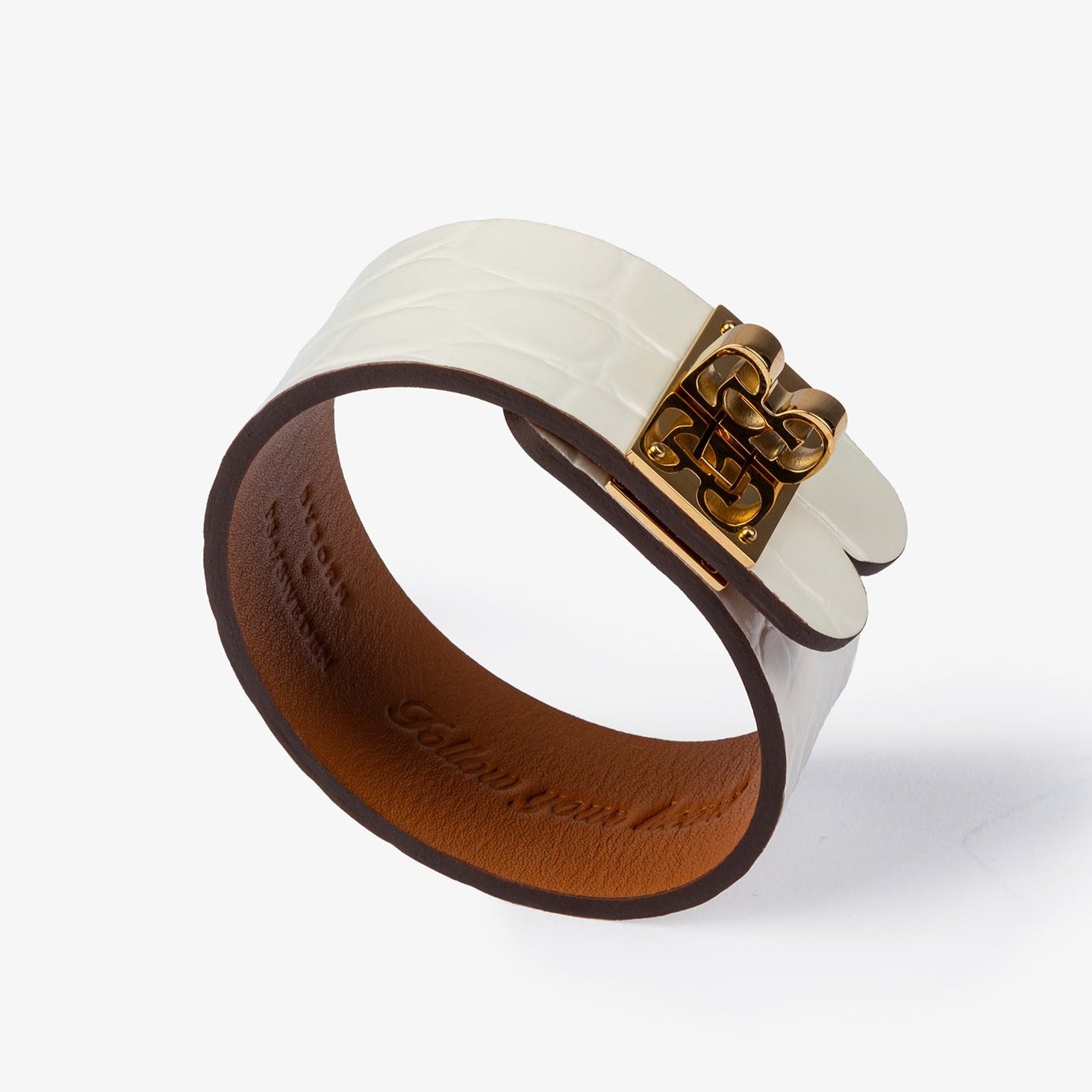 Gold or silver plated stainless-steel with embossed Italian calf leather