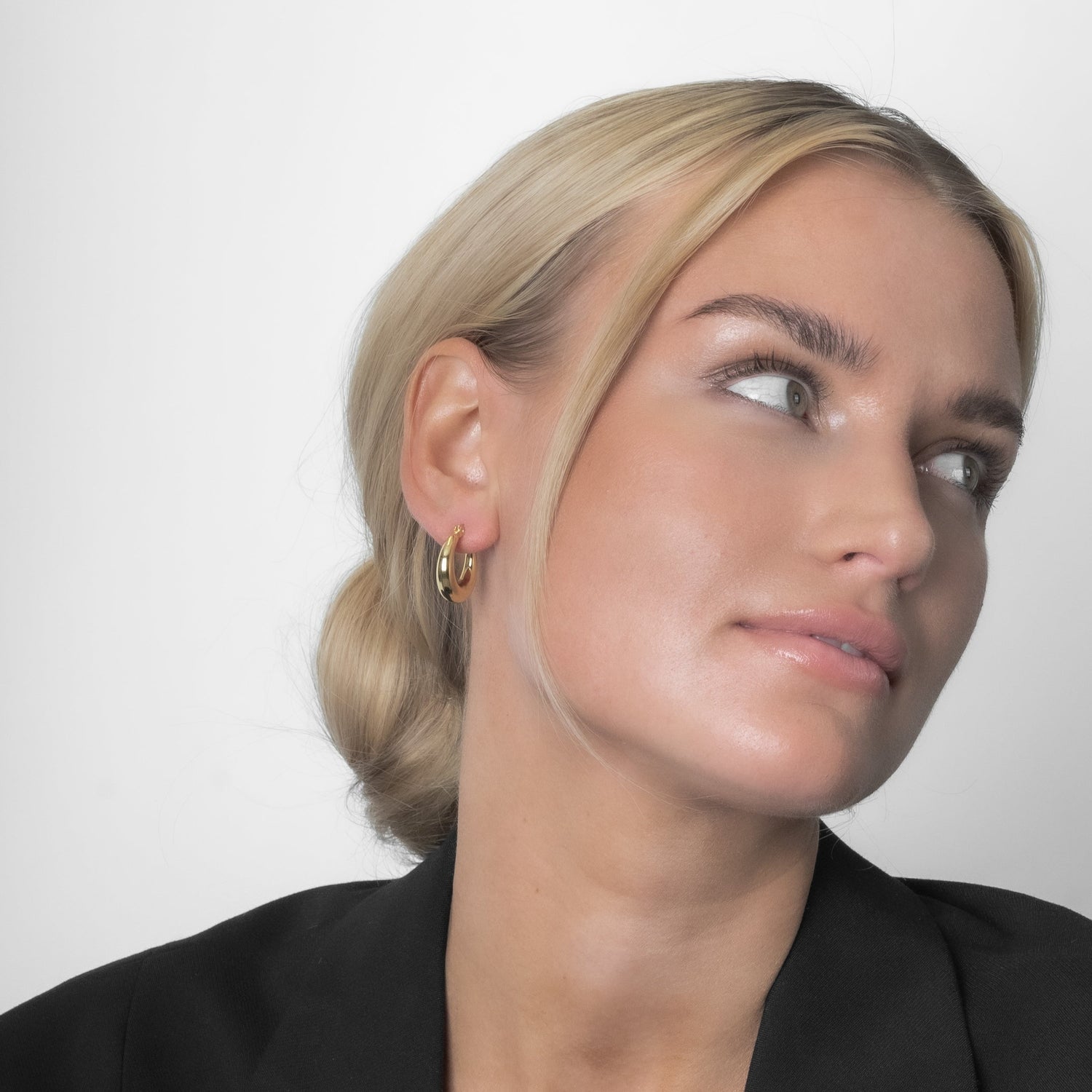 SLEEK HOOPS EARRINGS - The earrings that never go wrong. A timeless classic that exudes an elegant and refined look. Perfect for both everyday wear and special occasions. The earrings are medium-sized and lightweight. Delivered in our beautiful BYBORN jewelry box.