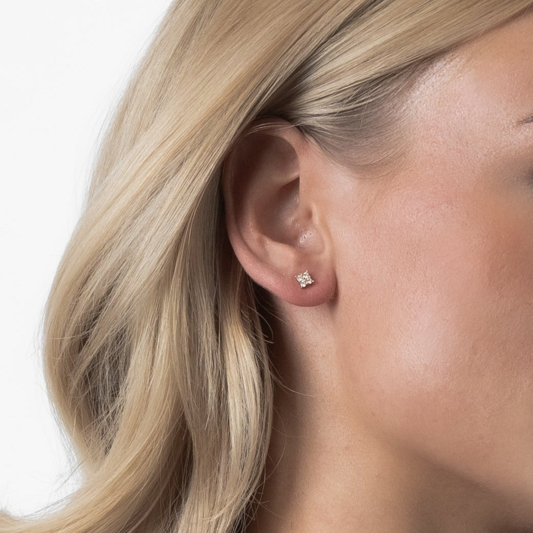 The SQUARE ZIRCONIA STUDS are a pair of minimalistic and stylish studs decorated with four small zirconia stones to create an elegant shimmer. Its minimalistic and glamorous design makes them just as right for everyday life as for more festive events. Advantageously, the studs are so light and comfortable that you forget you're wearing them. The studs are also perfect to combine with each other, other smaller studs or minimalist jewellery in the same style for a complete look. Available in 925 sterling silver or in 18k gold plating.