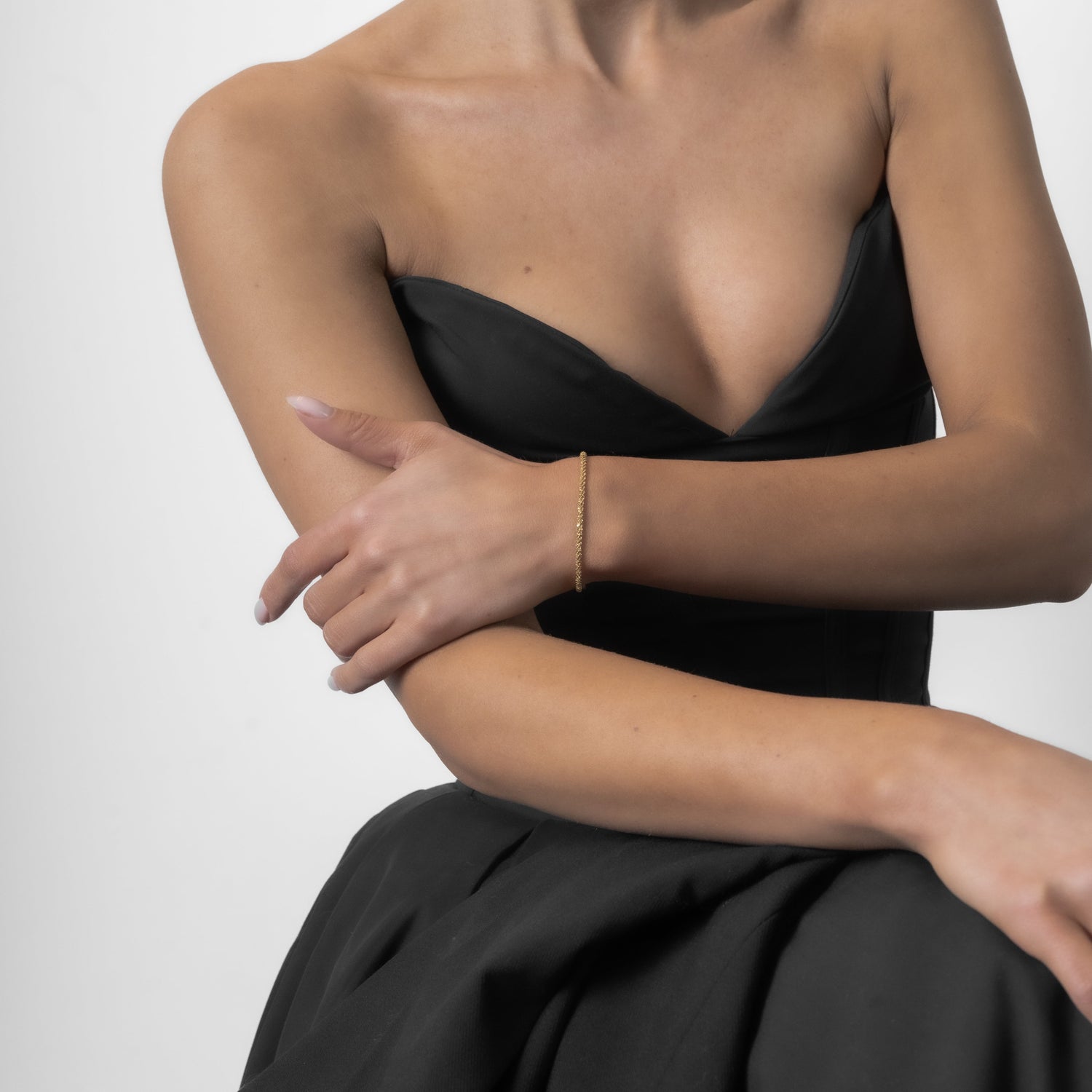 The stylish Tennis bracelet was named in 1987 after the professional female tennis player Chris Evert. During a game her wrist bracelet broke and she asked for a pause to look for the stones, the Tennis Bracelet was born.