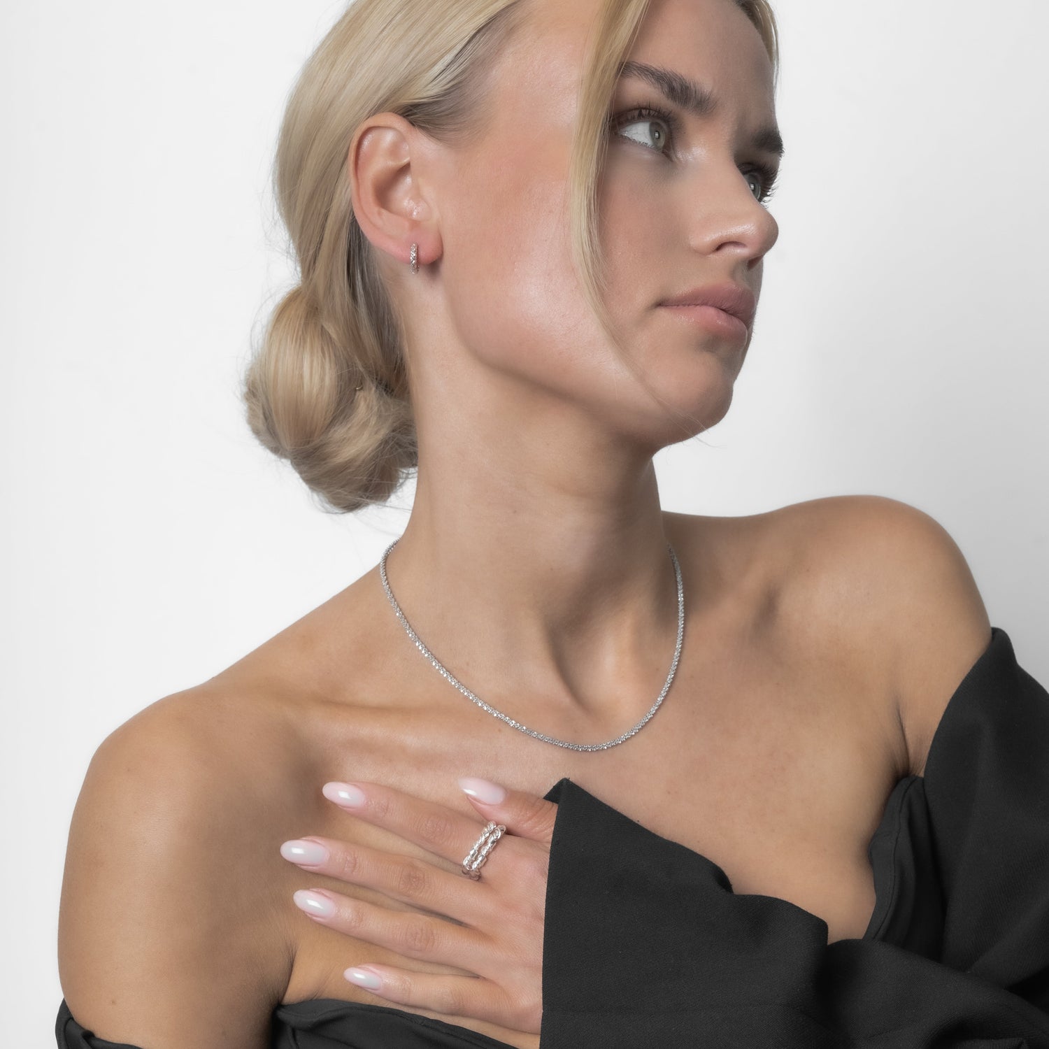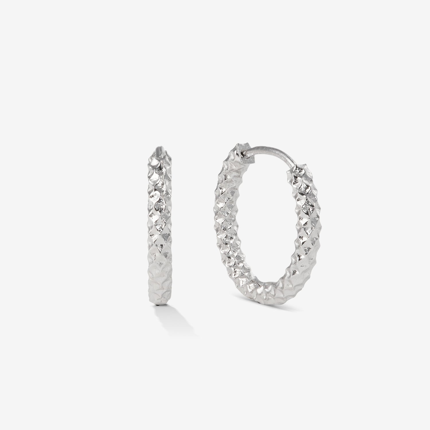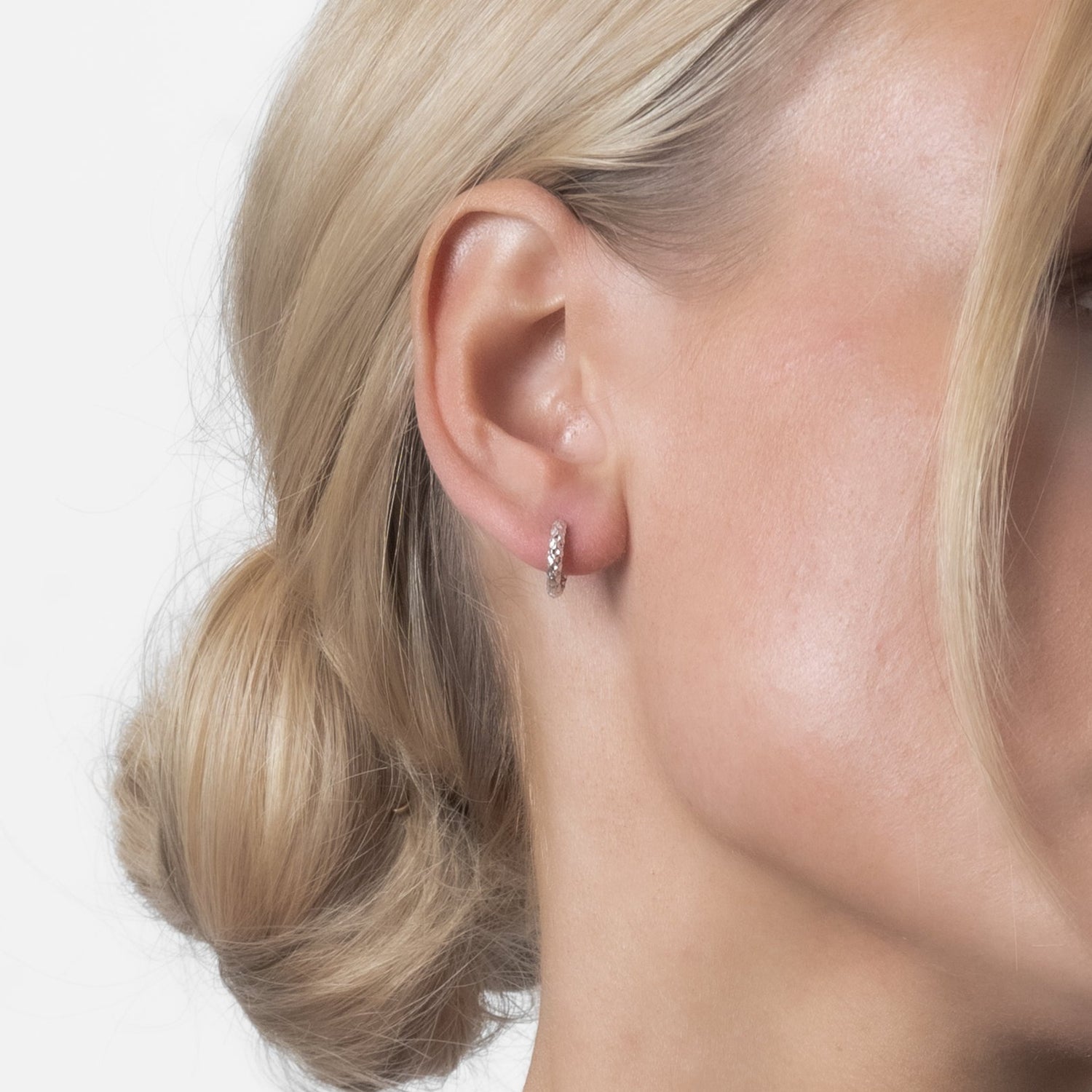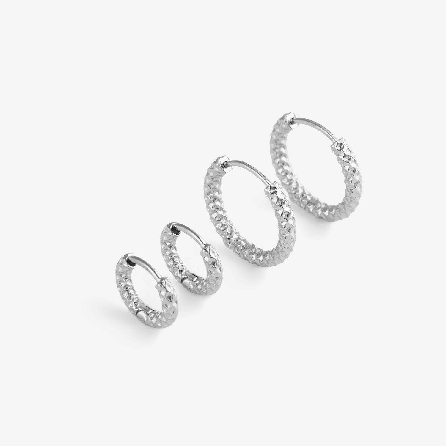 THE TEXTURED HOOPS have an elegant square textured surface and that stands out from other hoops. The texture design adds an extra sparkle to the earring and its size makes it perfect to stack, therefore it comes in two sizes that are designed to complement each other when worn together. They come in 925 sterling silver or 18k gold. The small hoops have a width of 10 mm and the large 15mm. The jewellery is delivered in a luxurious BYBORN box.