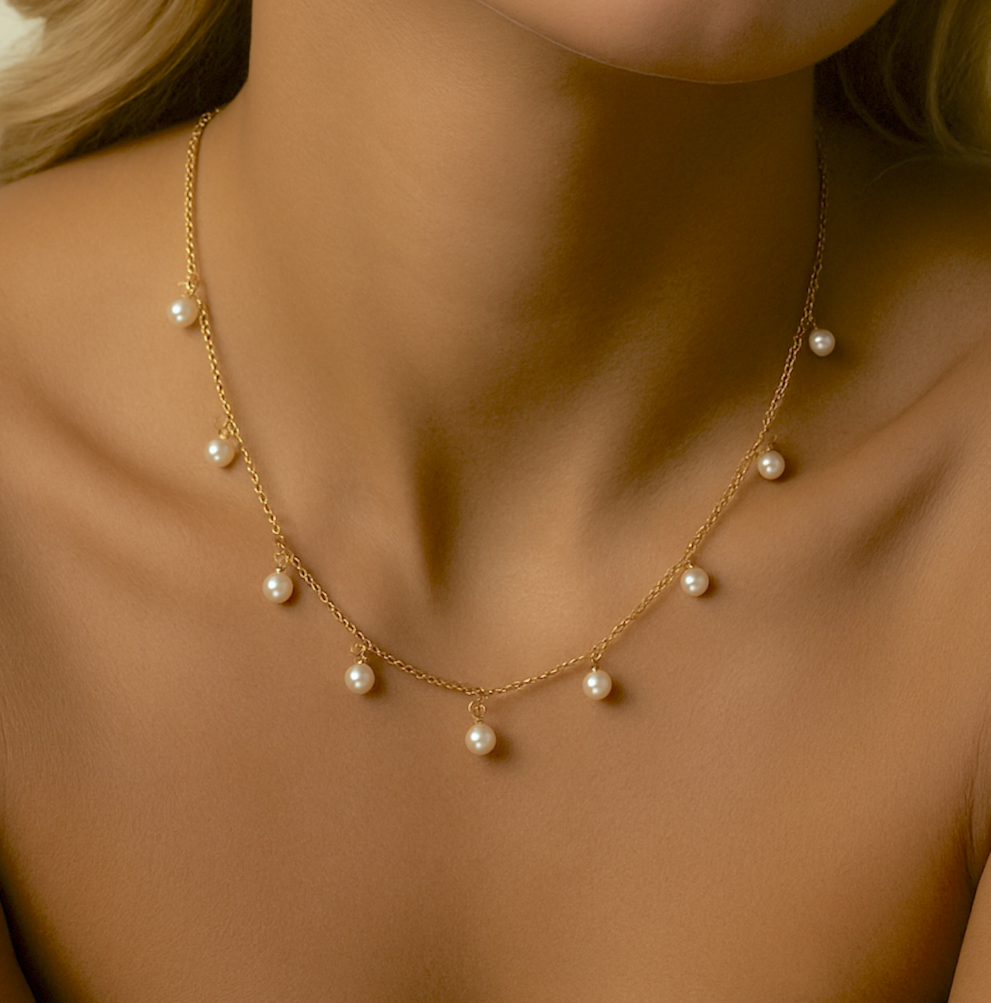 THE THIN PEARL NECKLACE is a beautiful fitted necklace with small freshwater pearls. Elegant for both day and night, this necklace is a classic essential to elevate your look. The necklace is delivered in a luxurious BYBORN box.