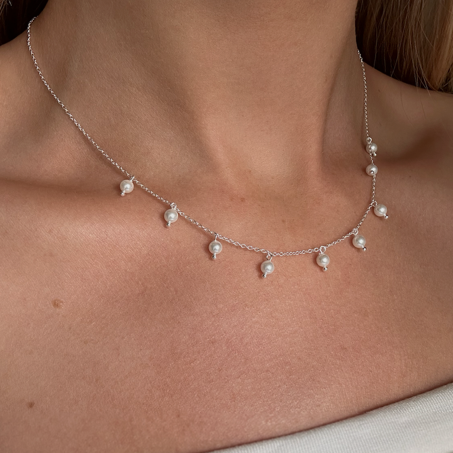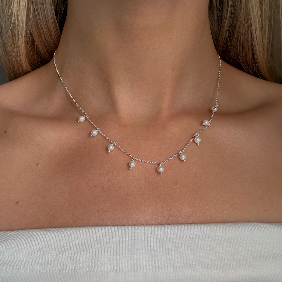 THE THIN PEARL NECKLACE is a beautiful fitted necklace with small freshwater pearls. Elegant for both day and night, this necklace is a classic essential to elevate your look. The necklace is delivered in a luxurious BYBORN box.