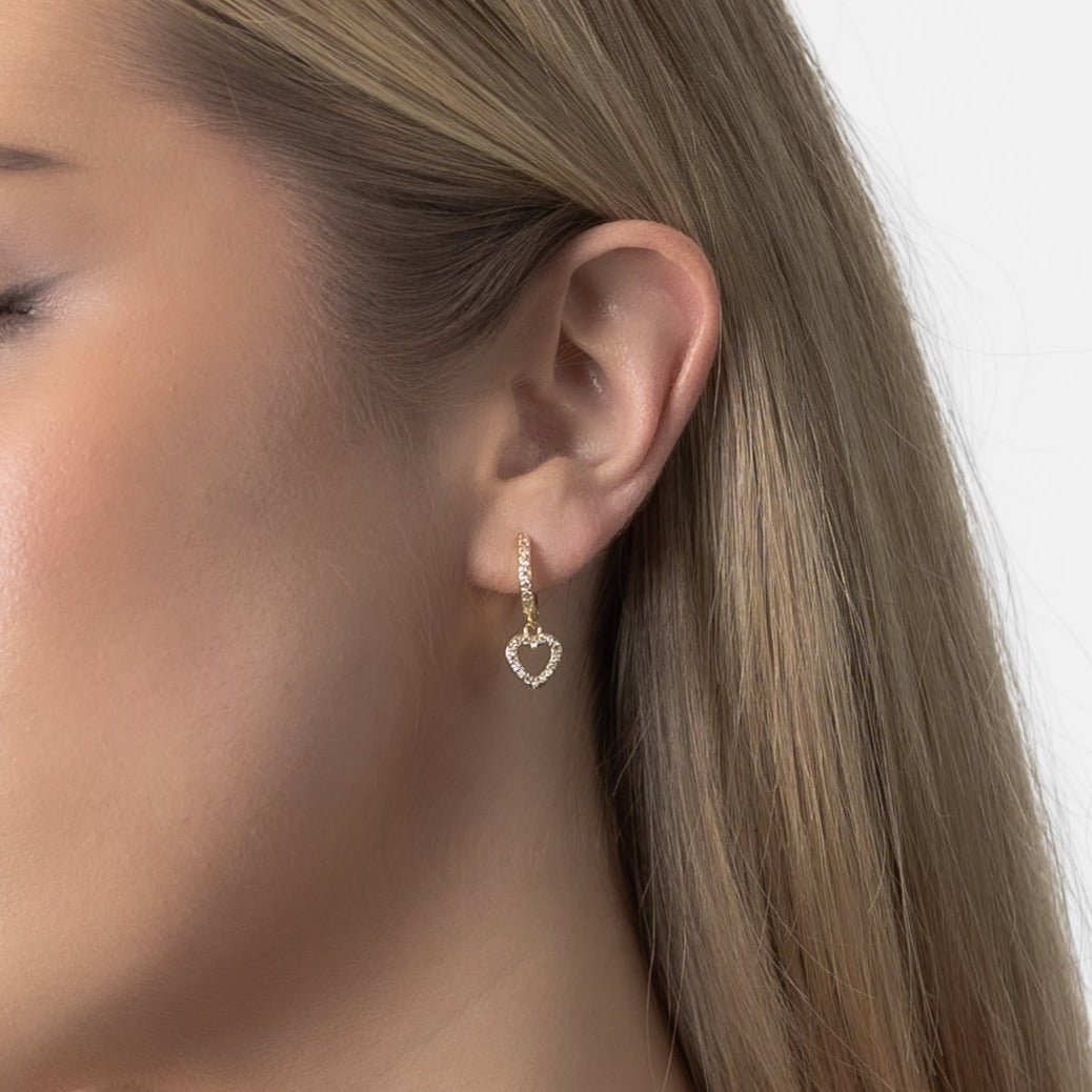 ZIRCONIA HEART EARRINGS - Minimalist earrings with timeless charm and elegant style. Designed with sparkling zirconia stones adorning both the hoop and the heart-shaped pendant. They make a perfect heartfelt gift for someone special or a treat for yourself! Delivered in our luxurious BYBORN jewelry box.